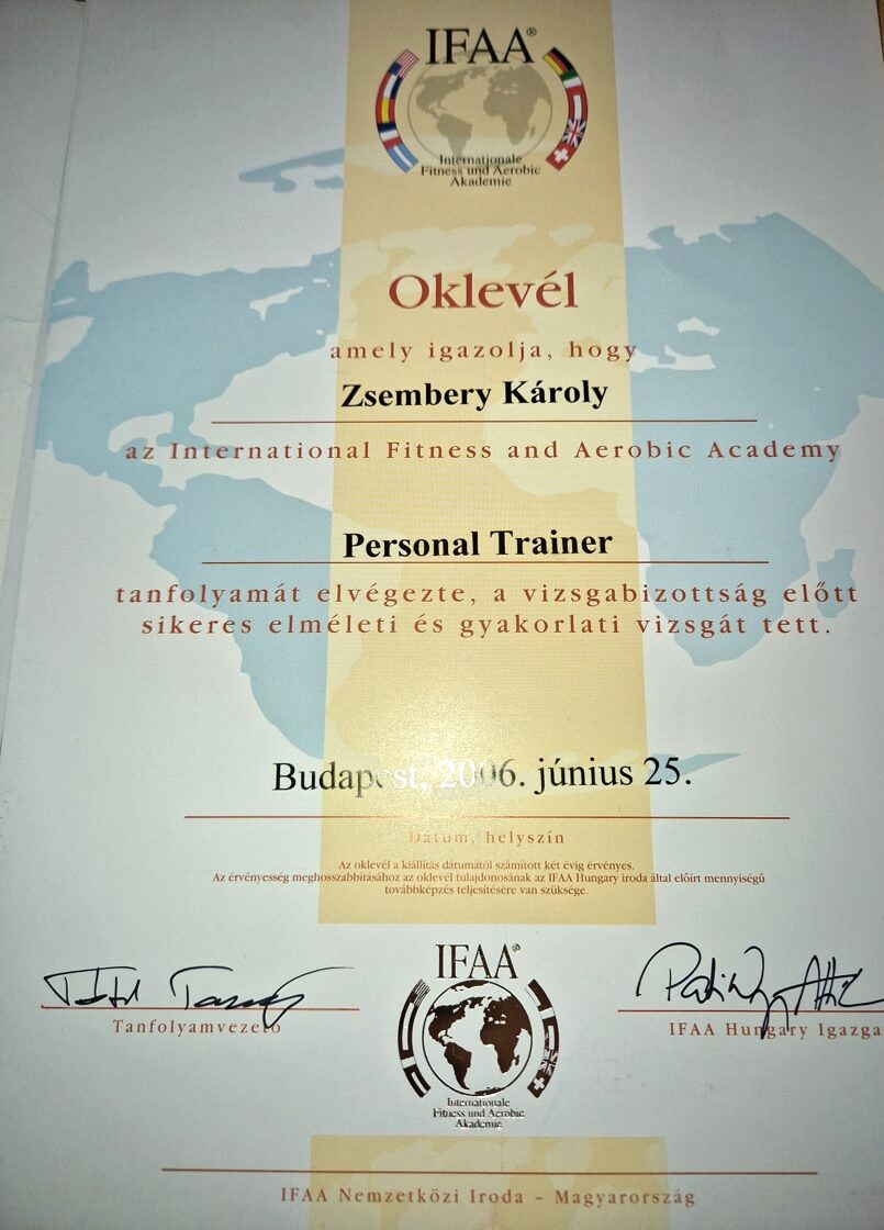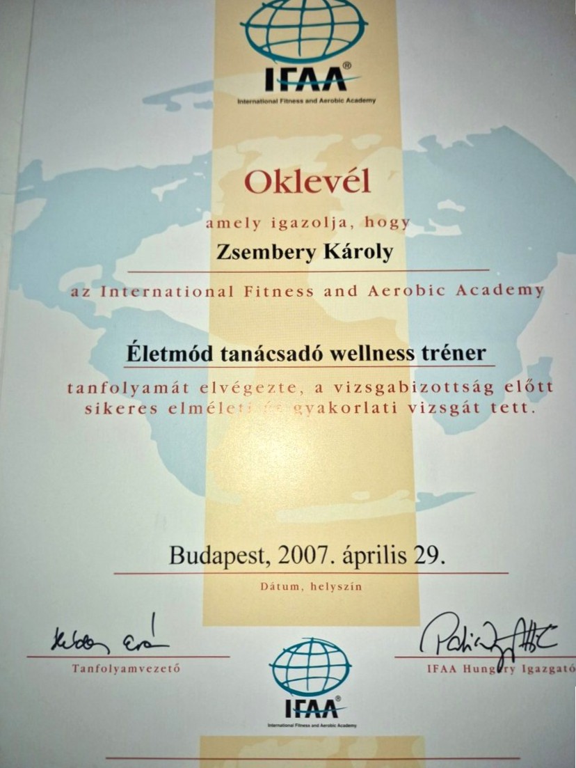 2011-ben szereztem meg a Nemzetközi Testépítő- és Fitnesz Szövetség (IFBB): Advanced Bodybuilding & Fitness Trainer Specialist képesítését itt Magyarországon, további ismeretekkel bővítve szakmai tudástáramat. Jelenleg 189 országban fogadják el világszerte ezt a papírt és a minőségi munkát amit jelképez.
